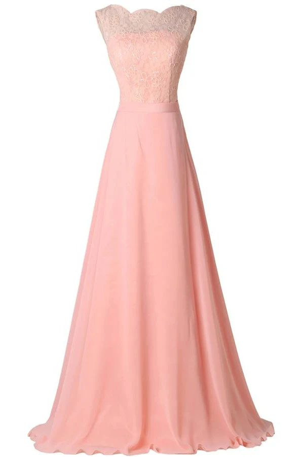 Blush Pink Lace Elegant Charming Formal Chiffon Prom Dress OK30