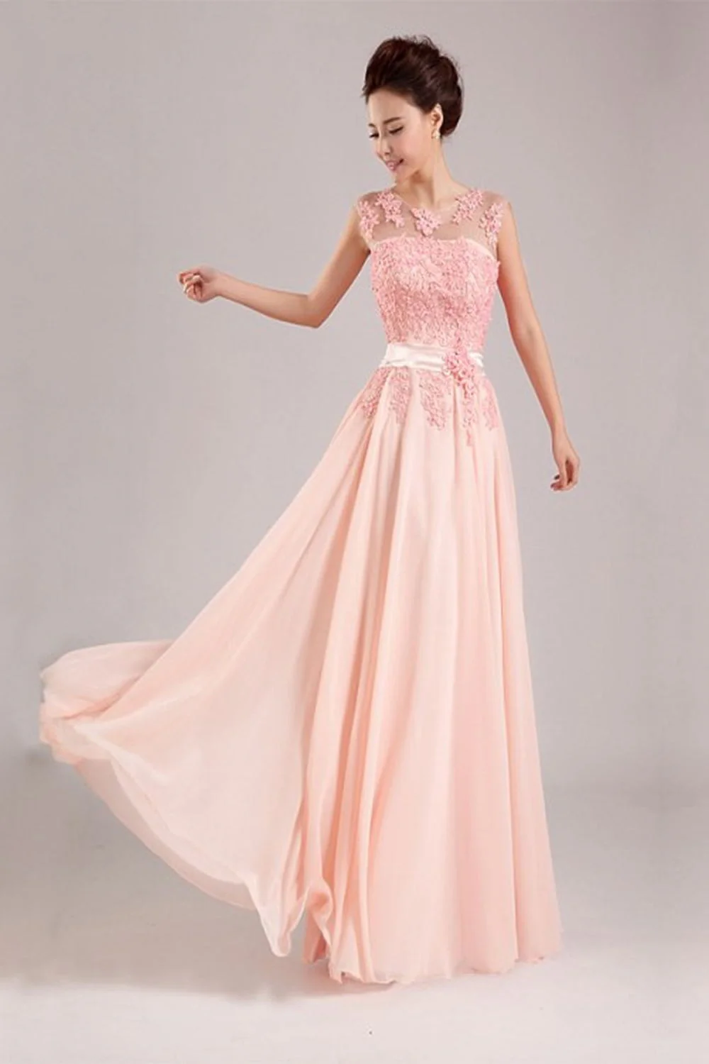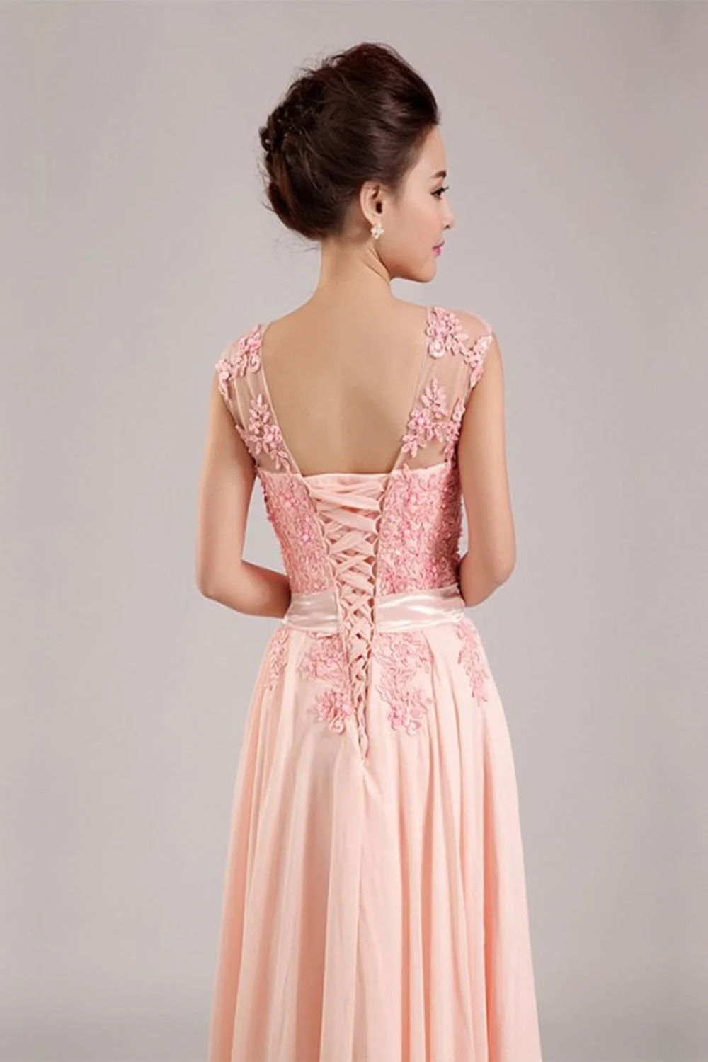 Real Beauty Long Lace Blush Pink Back Up Lace Prom Dress K68