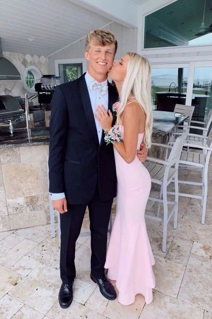 Simple Mermaid Pink Long Prom Dresses Spaghetti Straps Formal Evening Dress OK1785